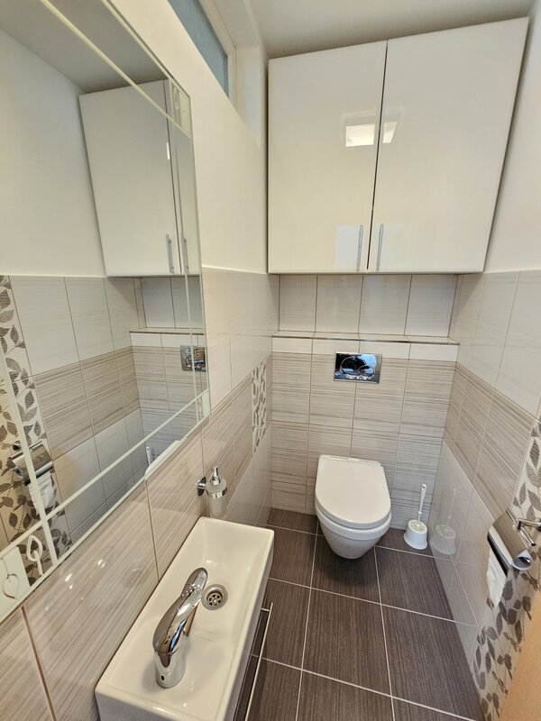 Patro: Tři útulné pokoje, velká koupelna s vanou, sprchovým koutem a WC,