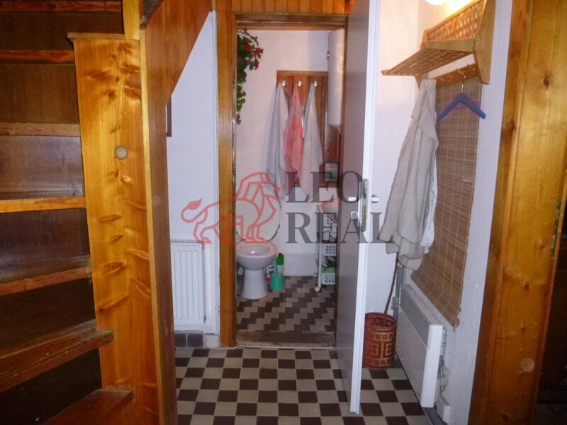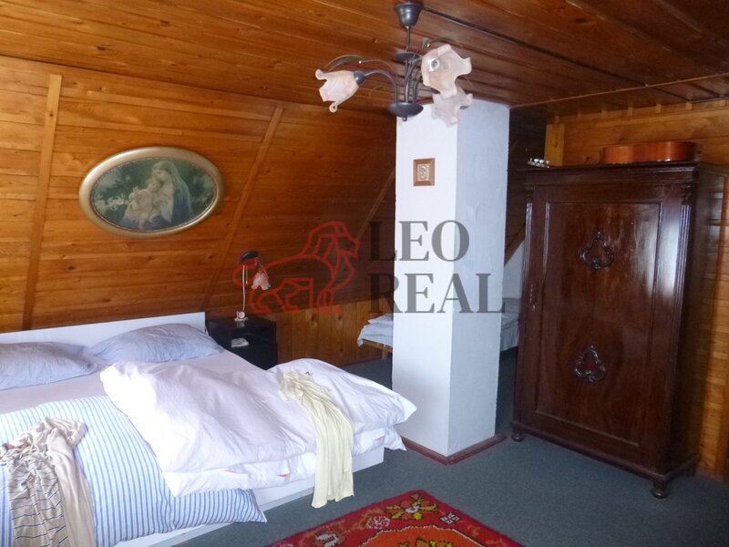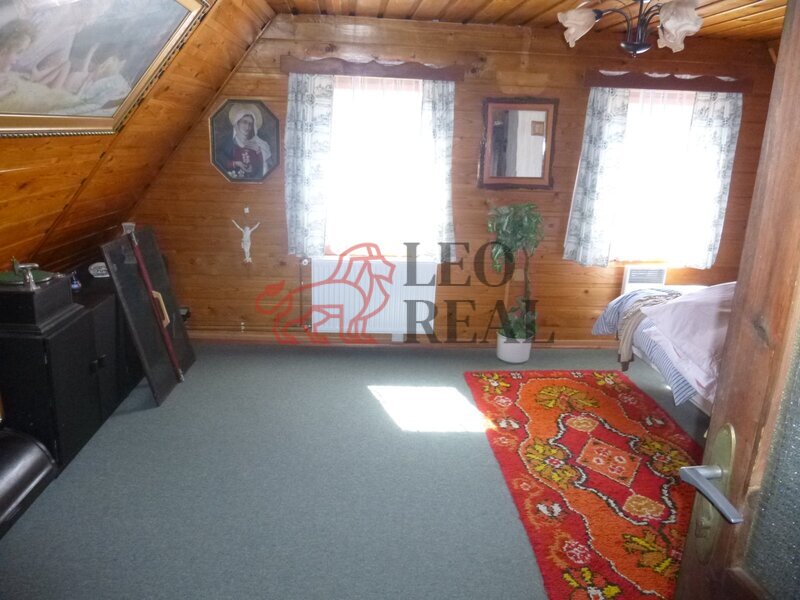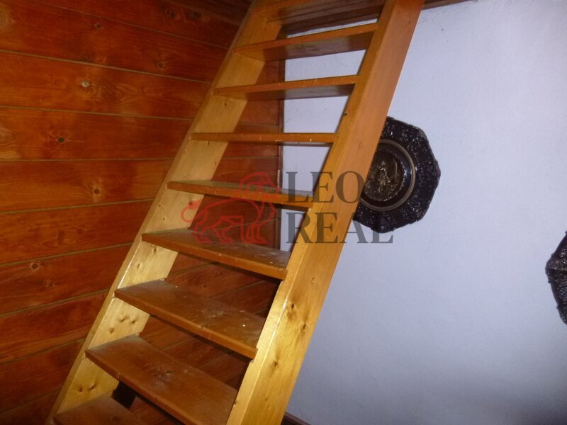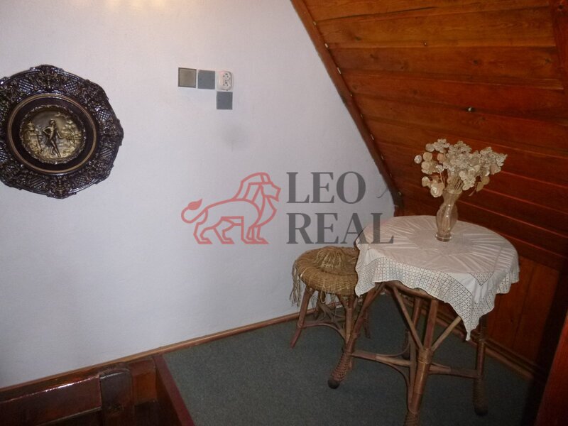 koutem. Jsou tu dřevěné schody do patra, kde se nachází prostorná ložnice