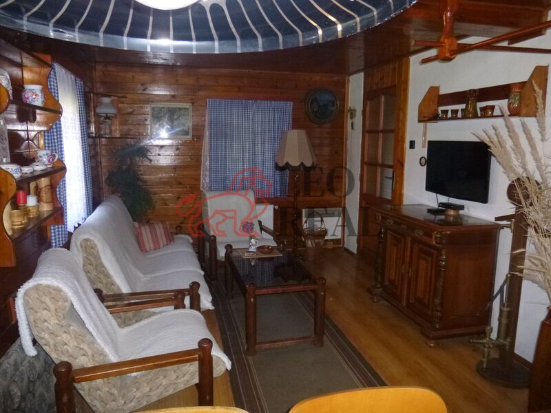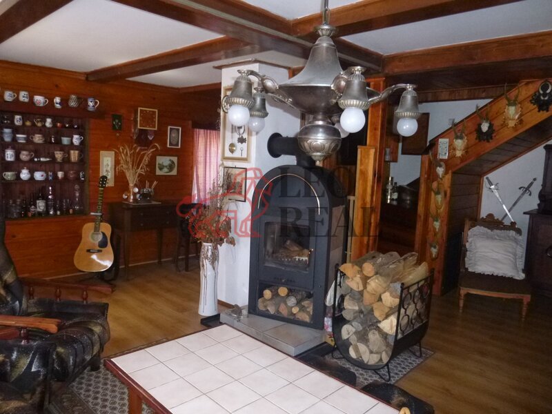 obýváku, kde se nacházejí krbová kamna s výměníkem, která vytápějí