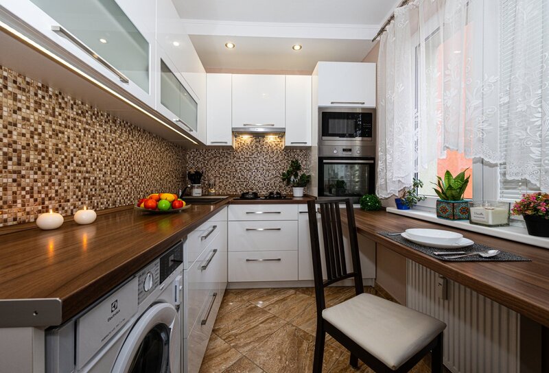 linkou a vestavnými spotřebiči (trouba, mikrovlnka, sporák, nová pračka