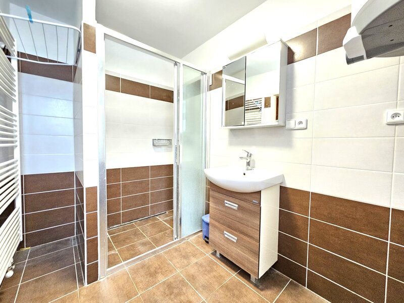 Vytápění je řešeno zánovním elektrokotlem a ohřev vody zajišťuje el.