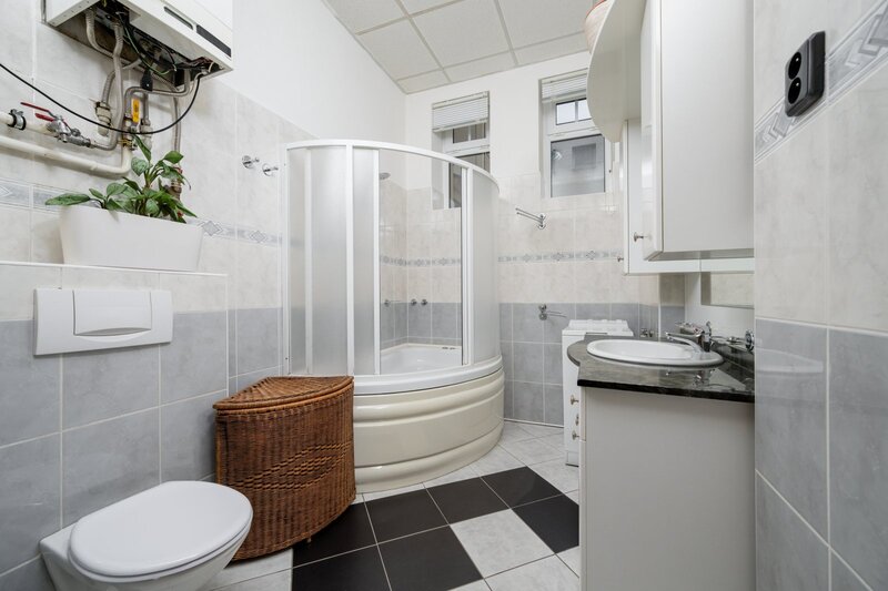 vlastní plynový kotel umístěný v koupelně, což umožňuje přímou