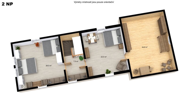 170 m² kombinuje možnost okamžité rekreace či bydlení s potenciálem pro