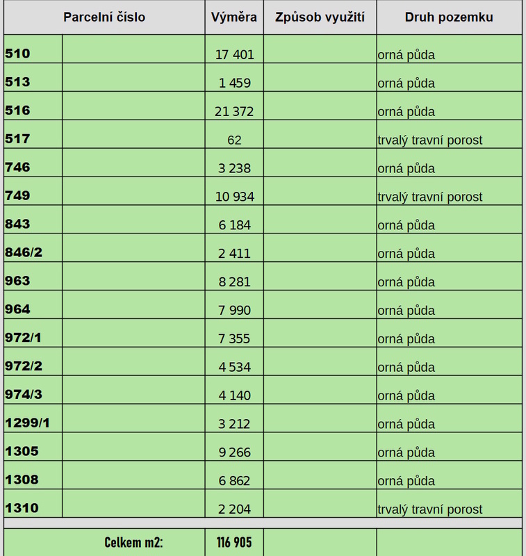 bezproblémový převod. Aktuálně jsou pozemky obhospodařovány na základě
