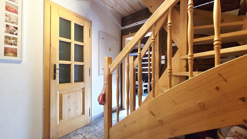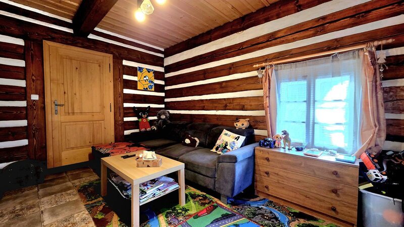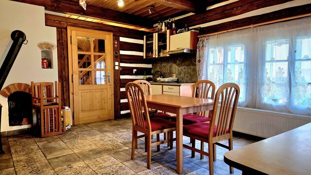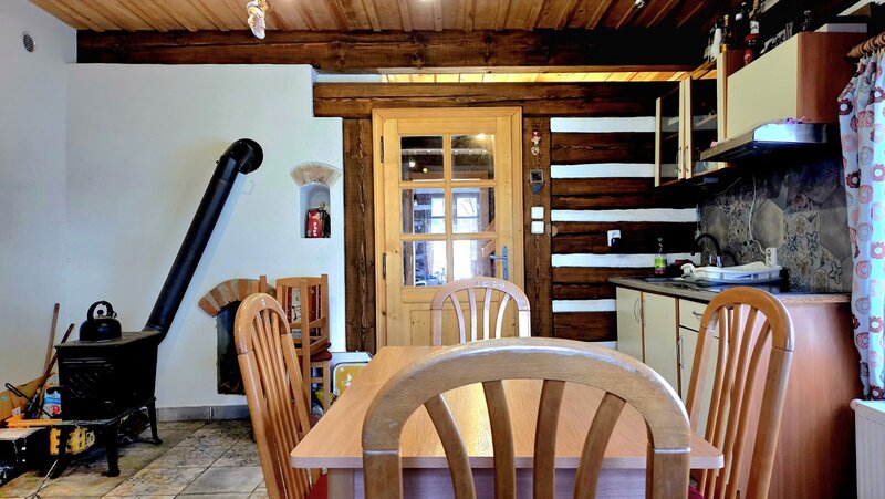 V přízemí domu naleznete prostornou světnici kuchyňským koutem, útulný