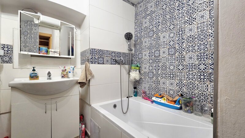 koupelnu s vanou a toaletou. Horní podlaží pak nabízí další dvě