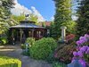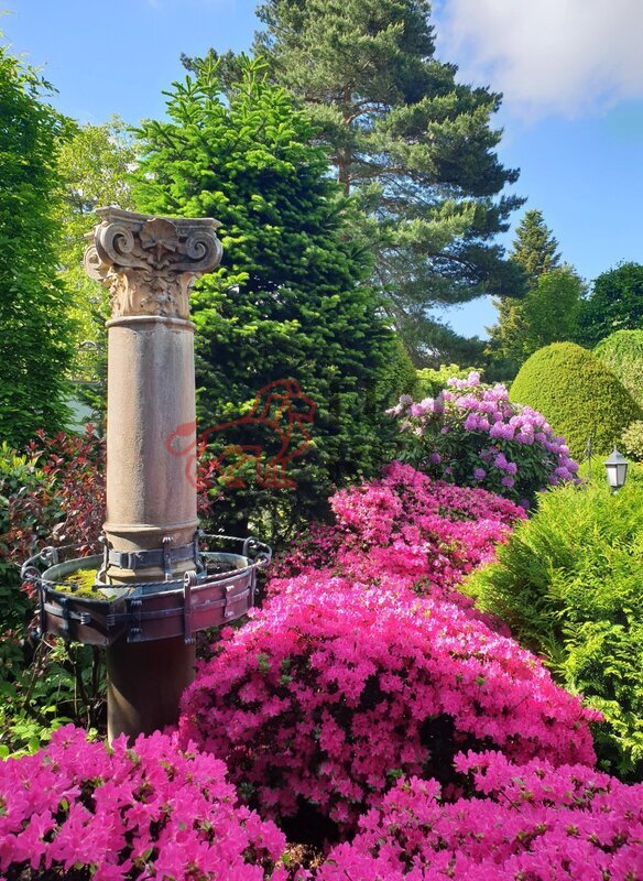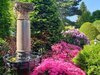 Pískovcová kašna a altán dotvářejí ráz této zahrady, plné