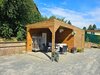 i koutkem pro meditaci. Dřevěné prvky a zahradní domek navazují na