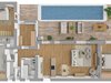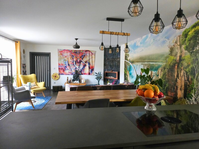 Obývací pokoj s kuchyní a jídelnou (45 m²) – přímý vstup na terasu