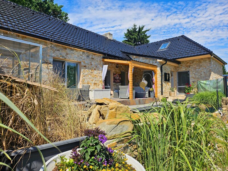 Nabízíme k prodeji moderní rodinný dům s koupacím jezírkem, rozkvetlou