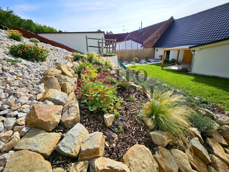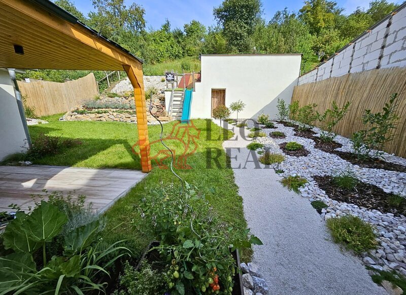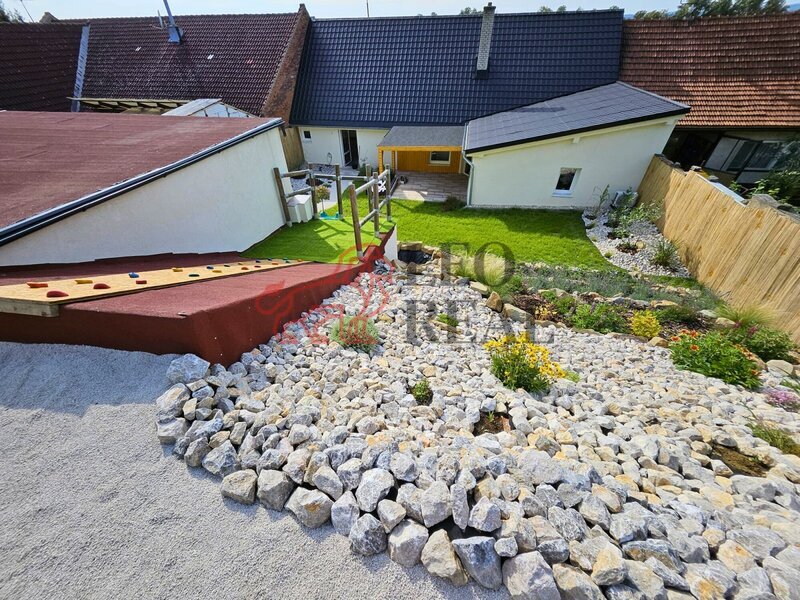 Součástí je domek na nářadí a dětské hřiště.