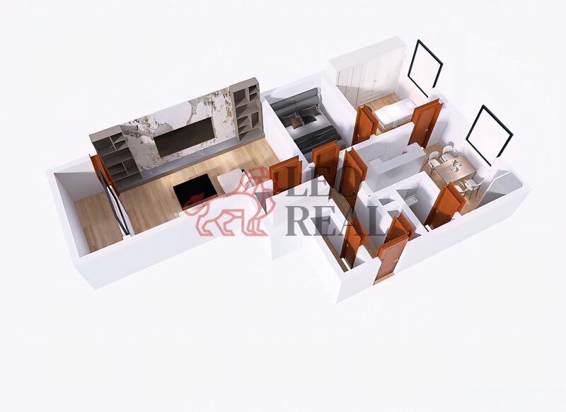 Byt nabízí praktické uspořádání místností, dostatek denního světla a